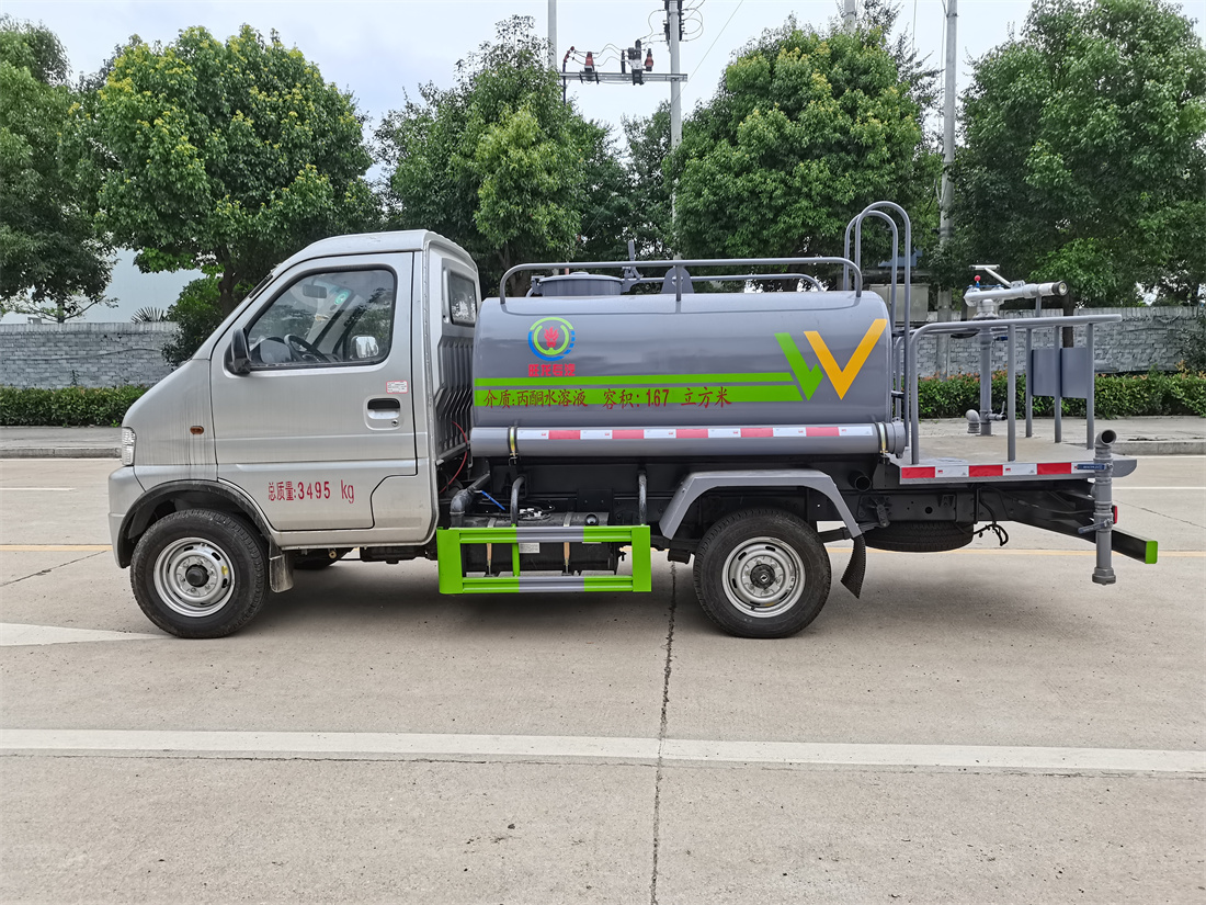 灑水車前裝有鴨形噴嘴或圓頭沖嘴,后面裝有圓柱開灑水噴嘴或蓮蓬頭噴嘴,后部有一工作平臺,裝配有水炮。后部還可裝8個噴嘴(選裝)。