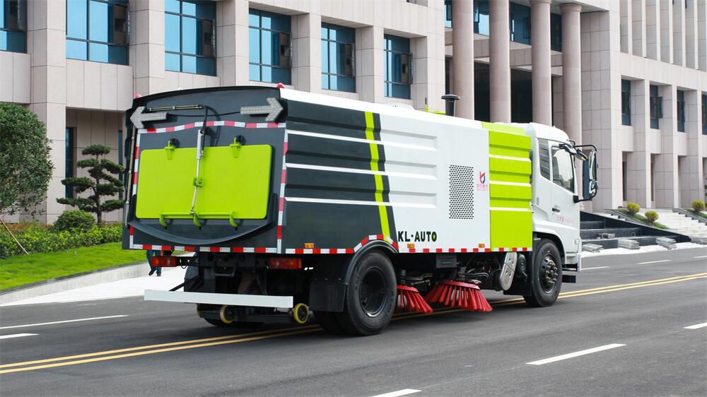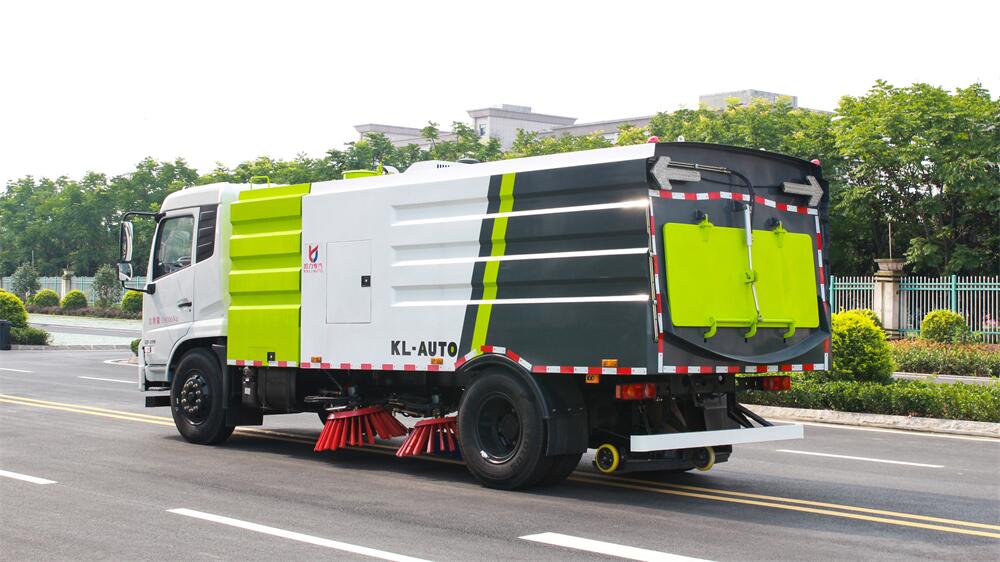 1.采用吸掃混合的方式收集垃圾,濕式除塵、電液,液壓傾翻卸料的作業(yè)方式對(duì)路面進(jìn)行清掃作業(yè)。