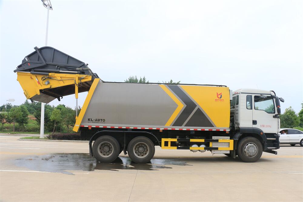 上裝配置:垃圾箱容積:20方,新款平面弧形廂體,廂體材料為武鋼優(yōu)質(zhì)碳鋼,PLC一鍵操作**,手電一體操作模式,兩側(cè)雙電控,帶駕駛室內(nèi)操作,底板支撐加強,雙向壓縮,開放式易清潔污水箱。壓縮式垃圾車采用機電液一體化技術,借助機、電、液聯(lián)合自動**系統(tǒng)、電腦**、手動操作系統(tǒng),通過填裝器和推鏟等專用裝置,實現(xiàn)垃圾倒入、壓碎或壓扁、強力裝填,把垃圾擠入車廂并壓實和推卸,污水全部進入污水廂,解決了垃圾運輸過程中的二次污染的問題。壓縮式垃圾車具有自動反復壓縮以及蠕動壓縮功能,壓縮比高、密封性好、裝載量大﹑操作方便、環(huán)保性好﹑整車利用功率高等優(yōu)點。作業(yè)自動化,垃圾收集方式簡便、高效。后翻轉(zhuǎn)機構(gòu)選裝:1、掛塑料桶式翻轉(zhuǎn)機構(gòu);2、掛鐵桶式翻轉(zhuǎn)機構(gòu);3、擺臂式翻轉(zhuǎn)機構(gòu); 4、簸箕斗式翻轉(zhuǎn)機構(gòu)。