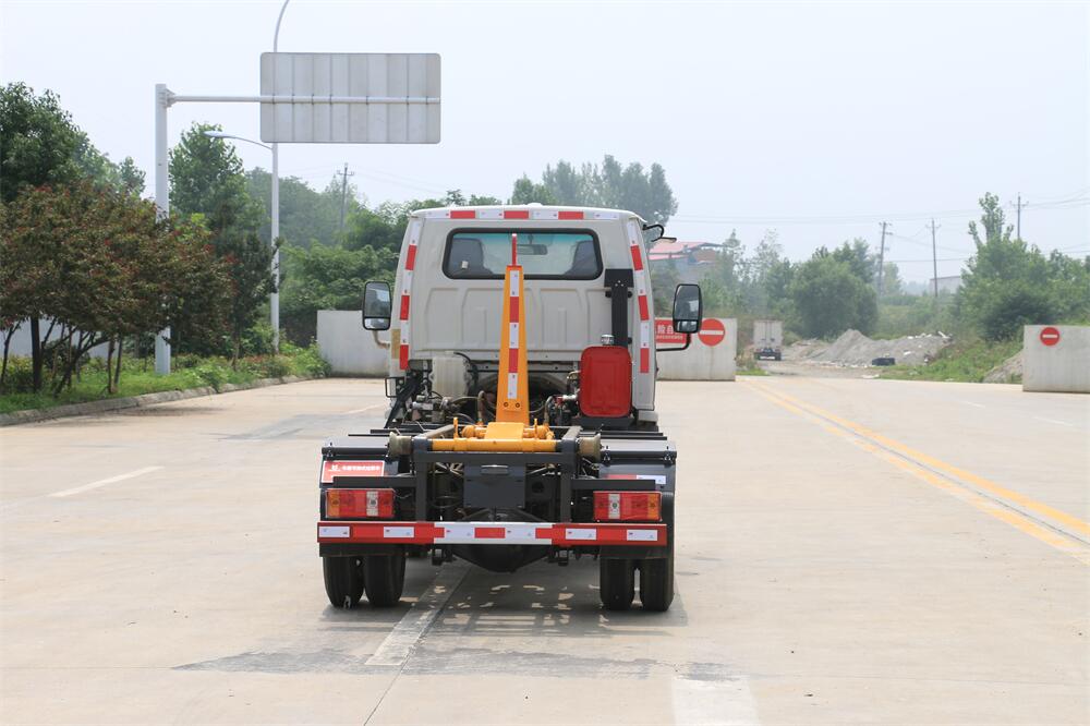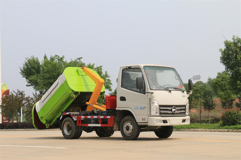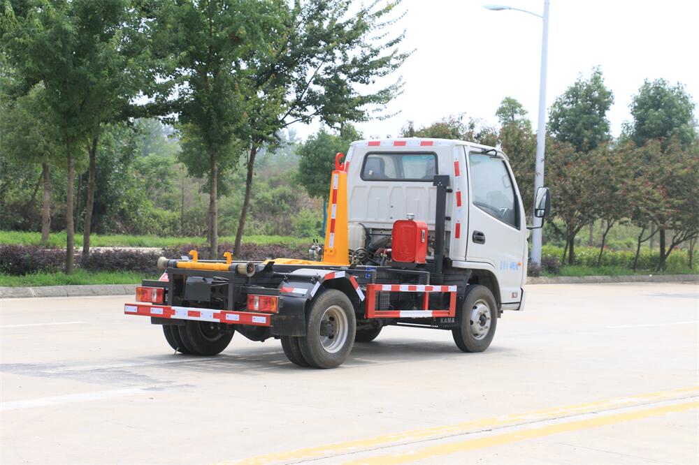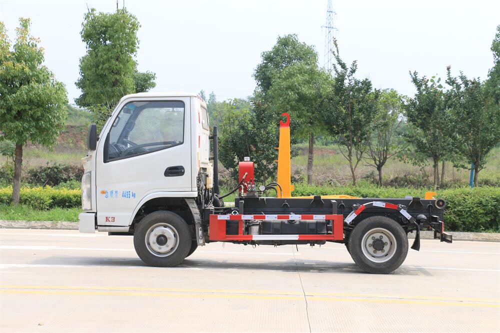 勾臂式垃圾車(chē)(車(chē)廂可卸式垃圾車(chē))介紹: 車(chē)廂可卸式垃圾車(chē)又叫拉臂式垃圾車(chē),是一種采用高新設(shè)計(jì)可伸縮的鉤臂,實(shí)現(xiàn)垃圾廂的二次吊裝,自吊上放下,可自行傾倒垃圾的環(huán)衛(wèi)設(shè)備。 拉臂式垃圾車(chē)結(jié)構(gòu)簡(jiǎn)單,操作穩(wěn)定方便,裝卸效率高,機(jī)械化程度高,節(jié)省人力。鉤臂垃圾車(chē)一車(chē)可帶多個(gè)垃圾廂,在裝卸的運(yùn)輸過(guò)程中可有效地避免二次污染。 拉臂垃圾車(chē)采用高新設(shè)計(jì)可擺動(dòng)的鉤臂,垃圾箱由框架、開(kāi)啟油缸、滑輪、后門(mén)和若干加強(qiáng)框架與鋼板焊接而成。調(diào)換貨廂快捷方便,貨廂上帶蓋(倒垃圾時(shí)可翻開(kāi)),鉤臂垃圾車(chē)?yán)鴰w可選用碳鋼、不銹鋼材質(zhì)、內(nèi)部采取環(huán)氧樹(shù)脂防腐處理,改裝部分與原車(chē)底盤(pán)為可分離式,維修方便且保持了原車(chē)的機(jī)動(dòng)性及行駛性能。