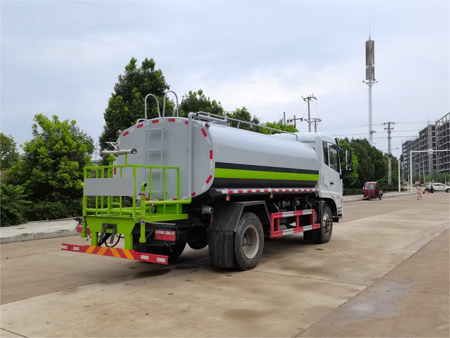 灑水車前裝有鴨形噴嘴或圓頭沖嘴,后面裝有圓柱開灑水噴嘴或蓮蓬頭噴嘴,后部有一工作平臺,裝配有水炮。后部還可裝8個噴嘴(選裝)。